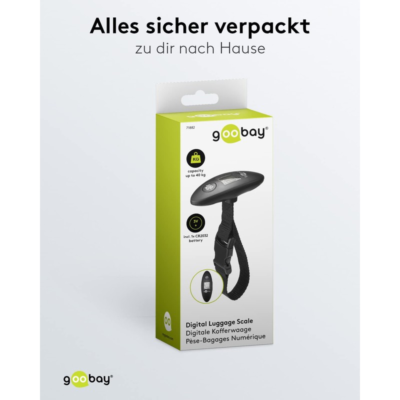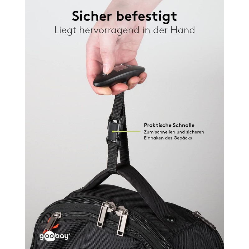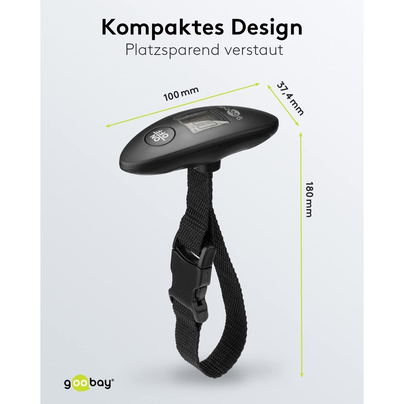 Goobay 71882 Digital Luggage Scales with Bright LCD Display and Tare Function for Luggage up to 40 kg, Comfortable Handle Fits Perfectly in the Hand, Suitable for Travel / Family Life, Black