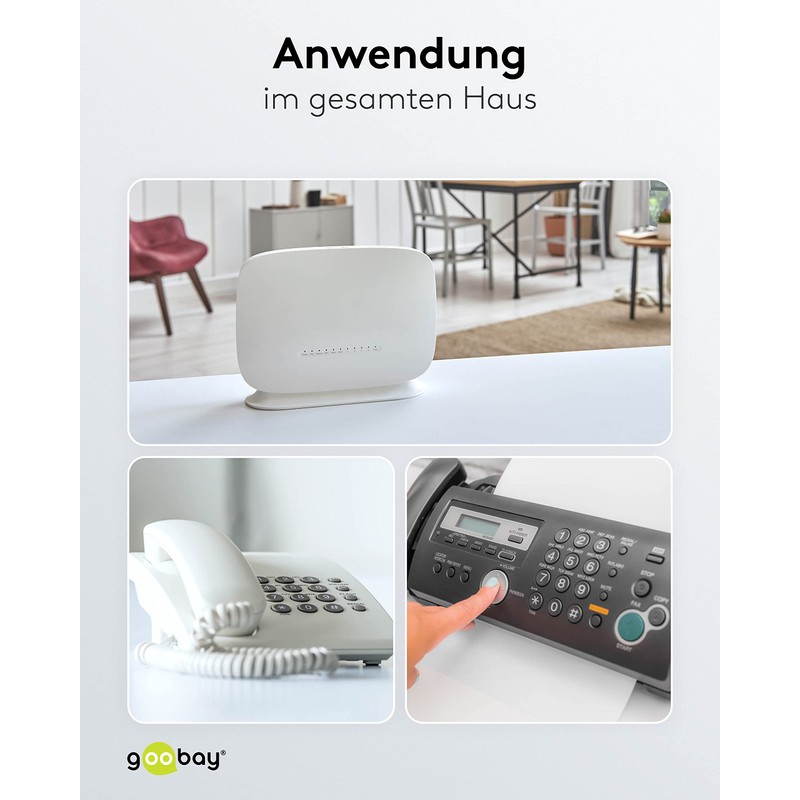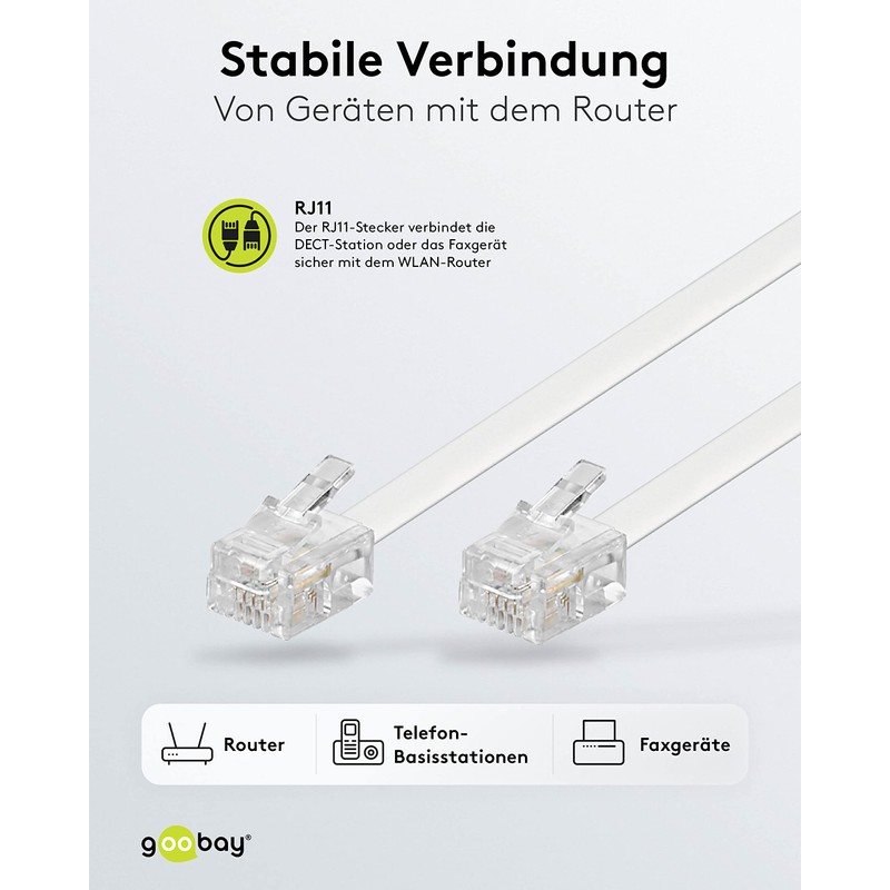 Goobay 93063 Modular Telephone Cable, White, 10m Length