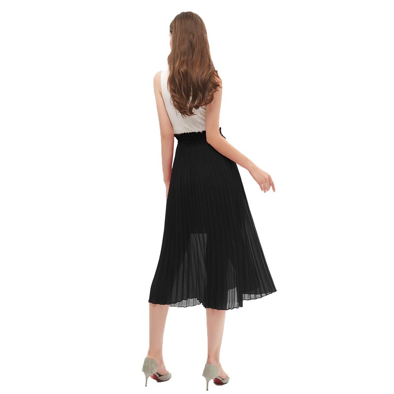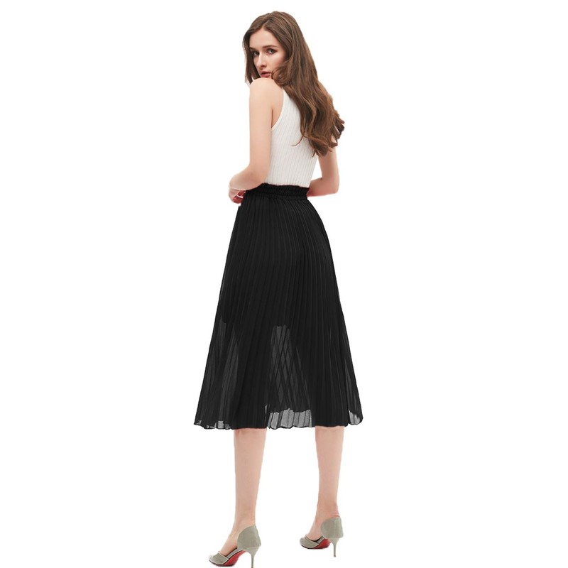 - Features: A-Line. elastic waistband, high waist, midi skirt
