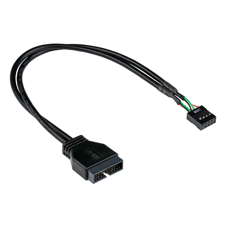 - Converts a 19-pin USB 3.0 front port into a 9-pin USB 2.0 block connector