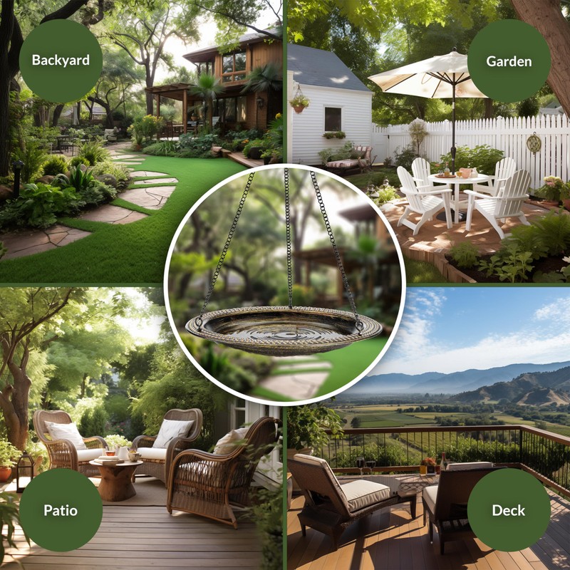- MULTI-USE: Versatile functionality for allowing multiple birds to bathe, play, feed on seed and drink water. Compatible with most bird heaters and solar-powered fountains.