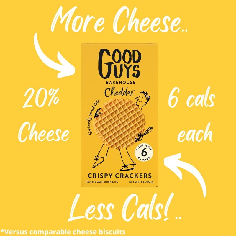Good Guys Bakehouse Cheddar Crackers, Low Calorie Snacks, Tasty, Crispy, Healthy Cheese Crackers, Pack of 8. 39 biscuits per pack. Non-GMO