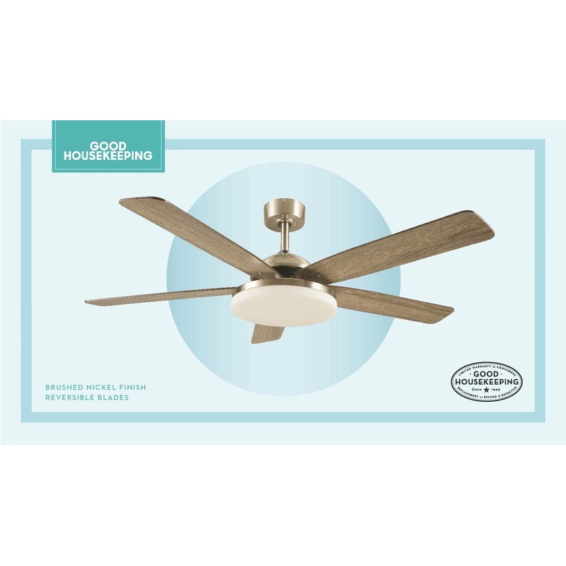 Good Housekeeping 63173-BN Adeline LED Indoor Ceiling Fan with Remote Control, Brushed Nickel, 52"