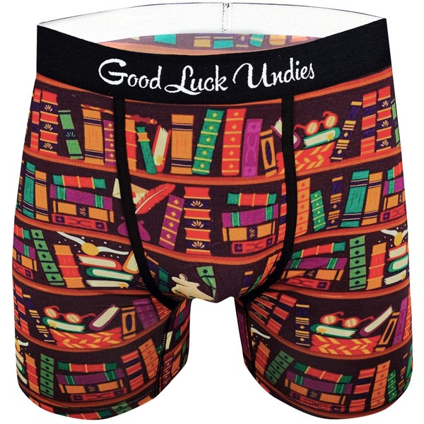 Good Luck Undies Men's Library Books Boxer Brief Underwear, Large