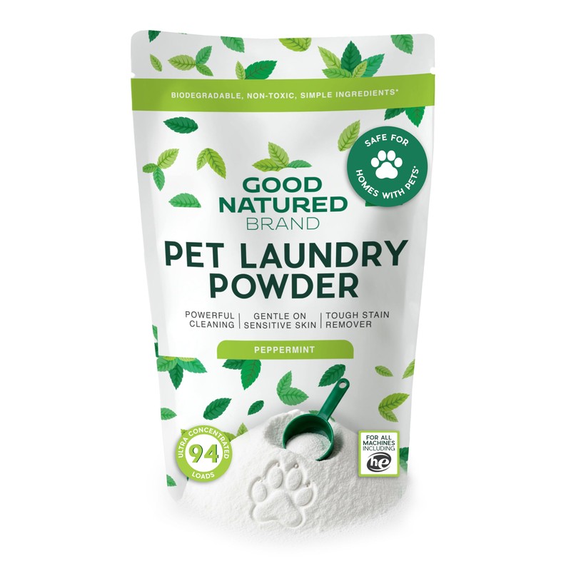 Good Natured Brand | Pet Stain & Odor Remover for Laundry | Pet Laundry Detergent for Dogs Beds, Cat Pee, Smell, Dog Drool | Hypoallergenic & Non-Toxic | Peppermint | 47oz 94 Loads