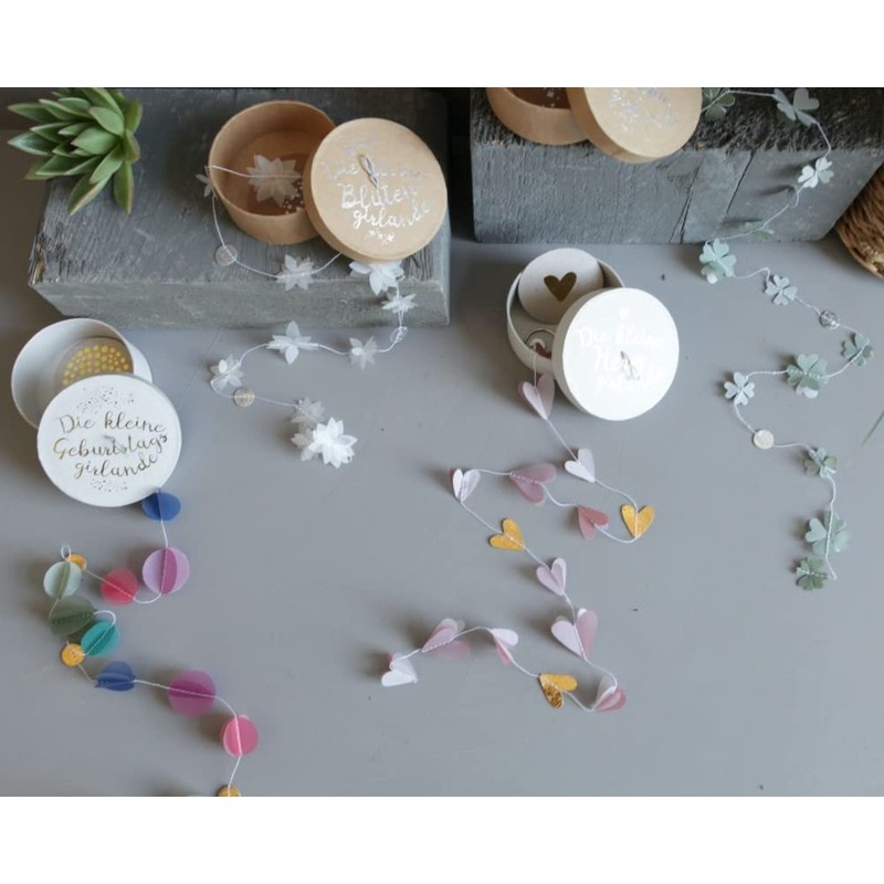 The filigree garlands made of tracing paper are something for the soul and decorate rooms and windows. In the small cardboard boxes they are also a great gift for birthdays, weddings or just because.