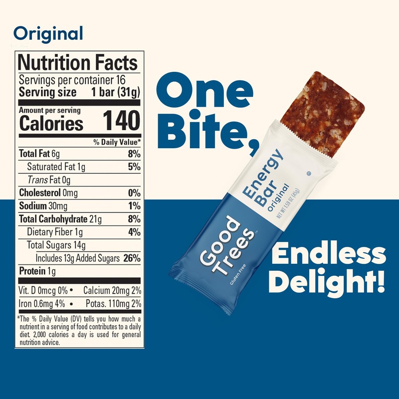 Good Trees Original Flavor Energy Bars, Gluten-Free Snack 16 Count