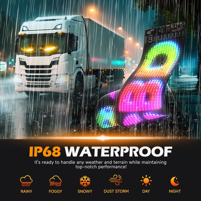 -IP68 Waterproof, The LED matrix adopts the epoxy water-proof technology, and a layer of colloidal resin is added on the face of the LED matrix to better protect the internal lamp beads, which not only increases the service life of the LED matrix, but also reaches IP68 waterproof.