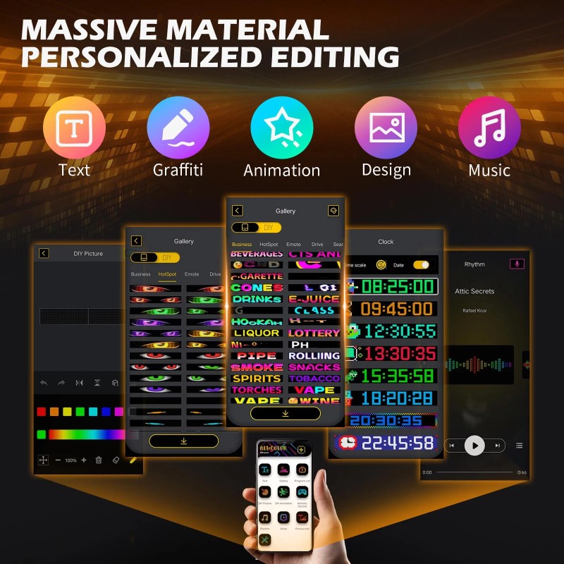 -Smart APP ControlConnect the LED matrix through the APP, you can DIY design text, patterns, animations according to your own needs and scenes, and you can also adjust the brightness and speed to perfectly meet your needs.