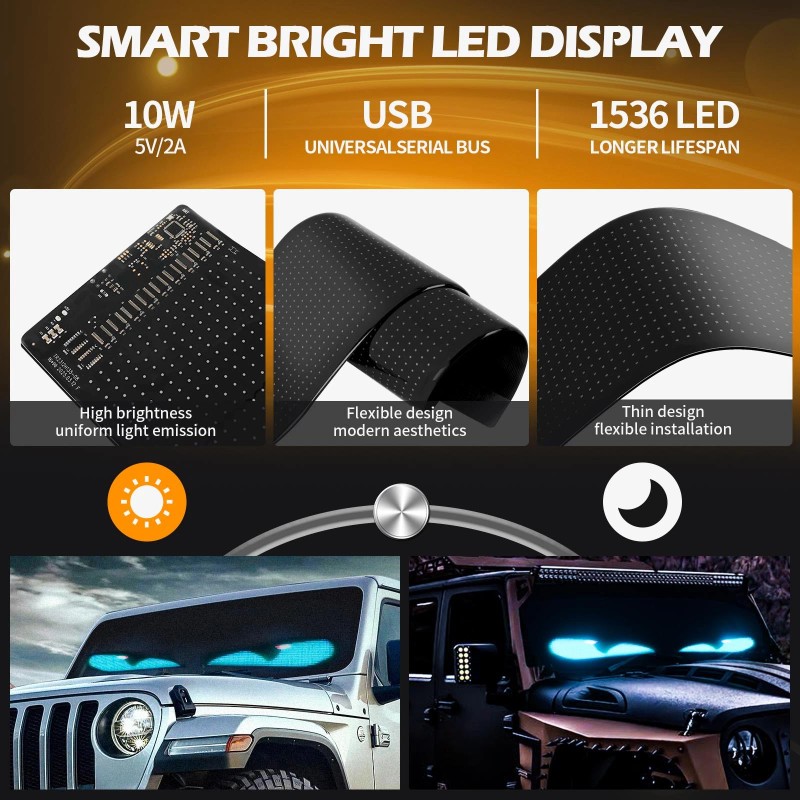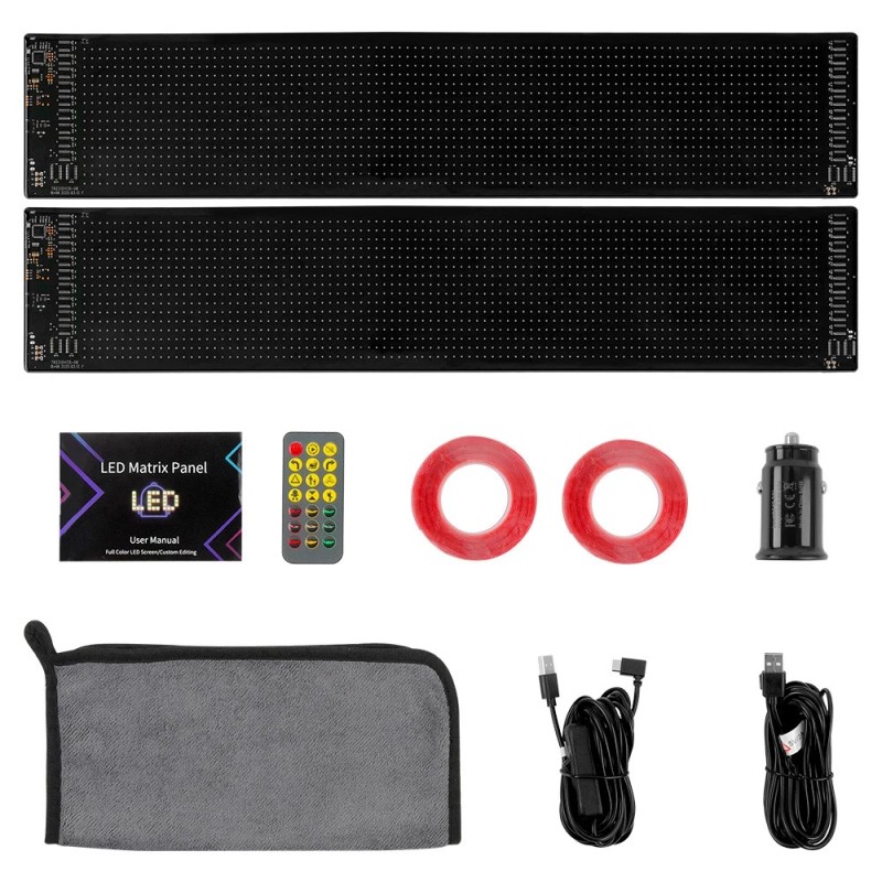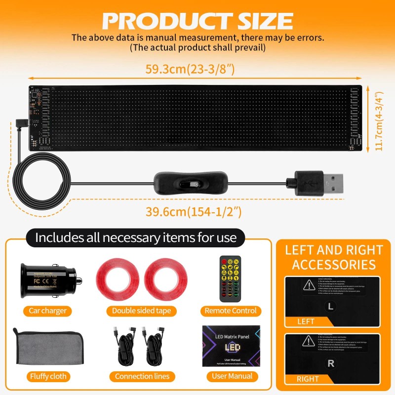 -Easy Application: The LED display features a durable, waterproof, and dust-resistant sticky polymer, maintaining flexibility for easy application on any window without glue. Peel it off mess-free anytime, with double-sided adhesive included for permanent use. Additionally, the package includes a multi-function remote and USB cable for versatile placement in your car, business, or home.