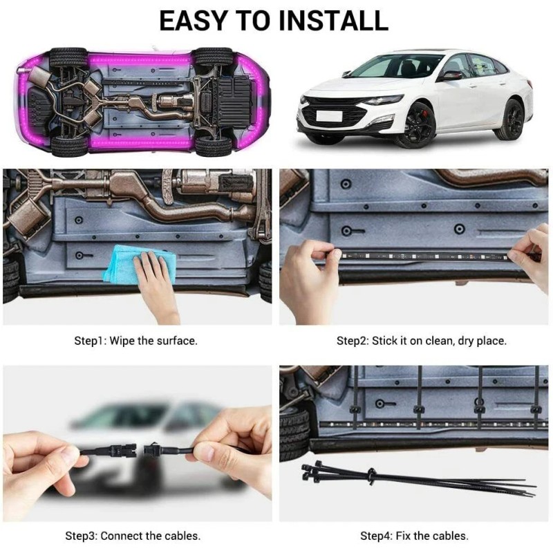 ◕‿◕ Easy installation & Universal Compatibility Car Underglow Led Strip: You can power the strip lights by the 12V or by Positive/Negative wiring.