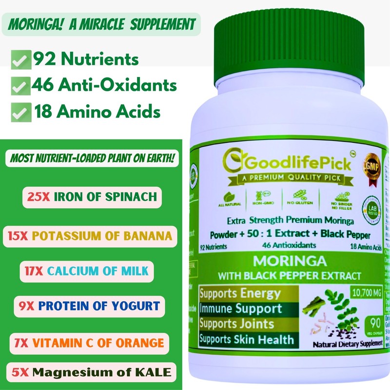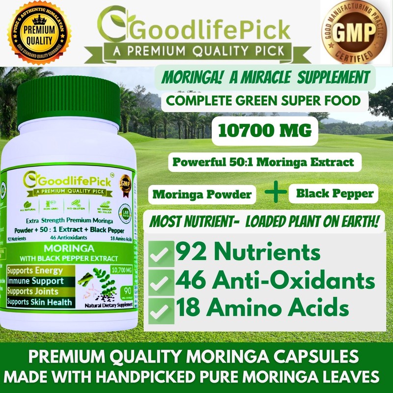 - [DON'T LET LOW ENERGY, LOW- IMMUNITY, AND LOW MOBILITY STOP YOU]. Unlock the Power of Moringa Oleifera by adding it to your daily routine to give your body the Natural Boost it needs. Experience the difference in your Overall Wellness and Energy levels with GoodlifePick Pure Moringa powder capsules that are rich in Natural Vitamins, Minerals, and Anti-Oxidants