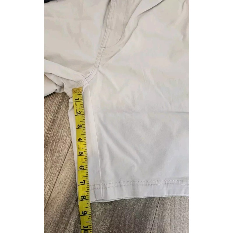 Elevate your casual style with these Goodthreads men's shorts in khaki gray. The drawstring closure and belt with zipper accents add a touch of uniqueness to these classic chino shorts. The 8-inch inseam and slim fit make them perfect for any season, whether it's summer, fall, or spring.