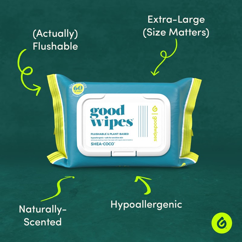 - SAY GOODBYE TO TOILET PAPER FOREVER: Butts deserve better in the bathroom than dry scratchy toilet paper C Goodwipes are flushable butt wipes with a heavenly feel that calms, cools and soothes and actually cleans your rear end with no irritation. Baby wipes cannot be flushed and leave a soapy and filmy residue. Toilet paper spreads and smears poop, cuts your skin, and leaves remnants behind. Bidets only spread poop around.