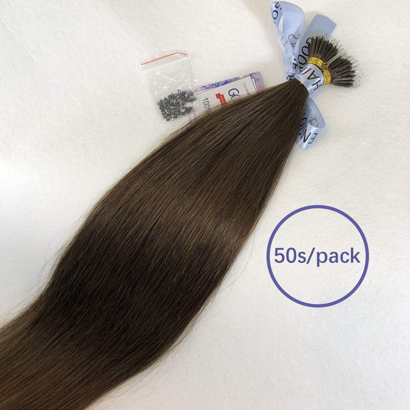 GOOFIT Nano Tip Hair Extensions Nano Beads Human Hair Remy Hair Nano Ring - 1g/s, 50s/pack - (18" #04 Medium Brown )