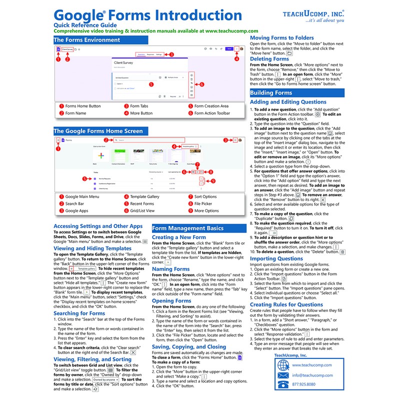 Google Forms Quick Reference Training Card - Laminated Tutorial Guide Cheat Sheet (Instructions and Tips) by TeachUcomp Inc
