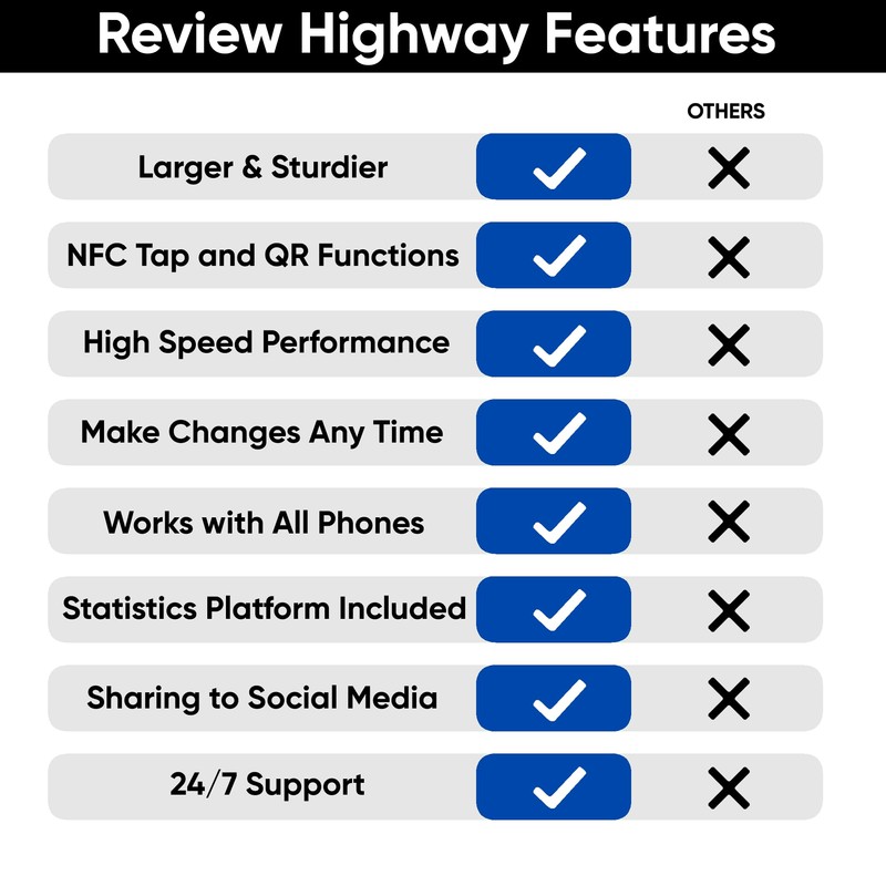 - ▶️EXCEPTIONAL CUSTOMER SUPPORT: Streamline your Google review stand setup with Review Highway's advanced software. Our friendly support is always on hand, and managing your NFC and QR card stand is easy with our tailored platform.