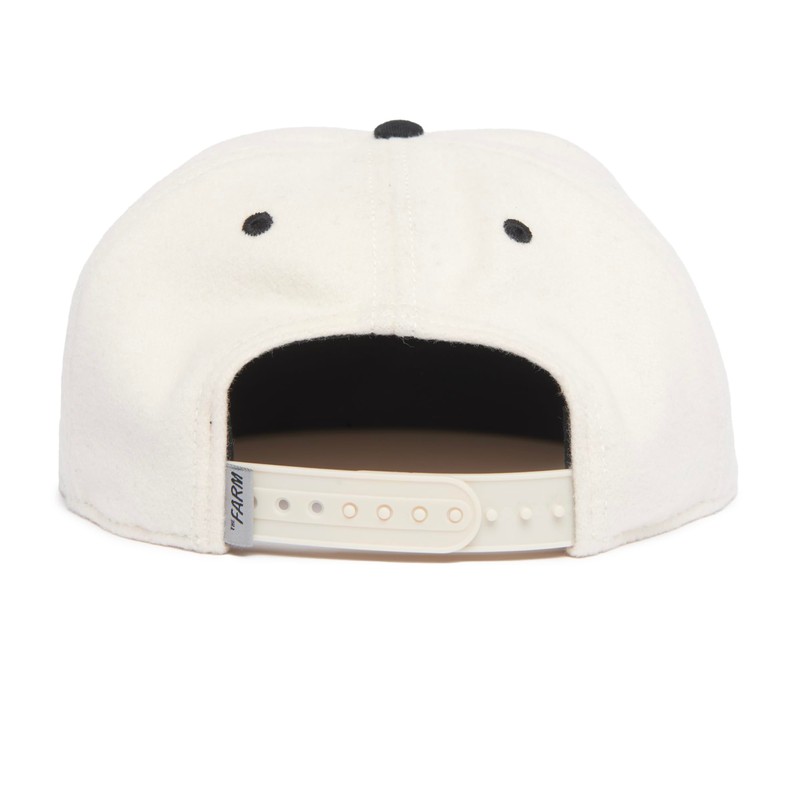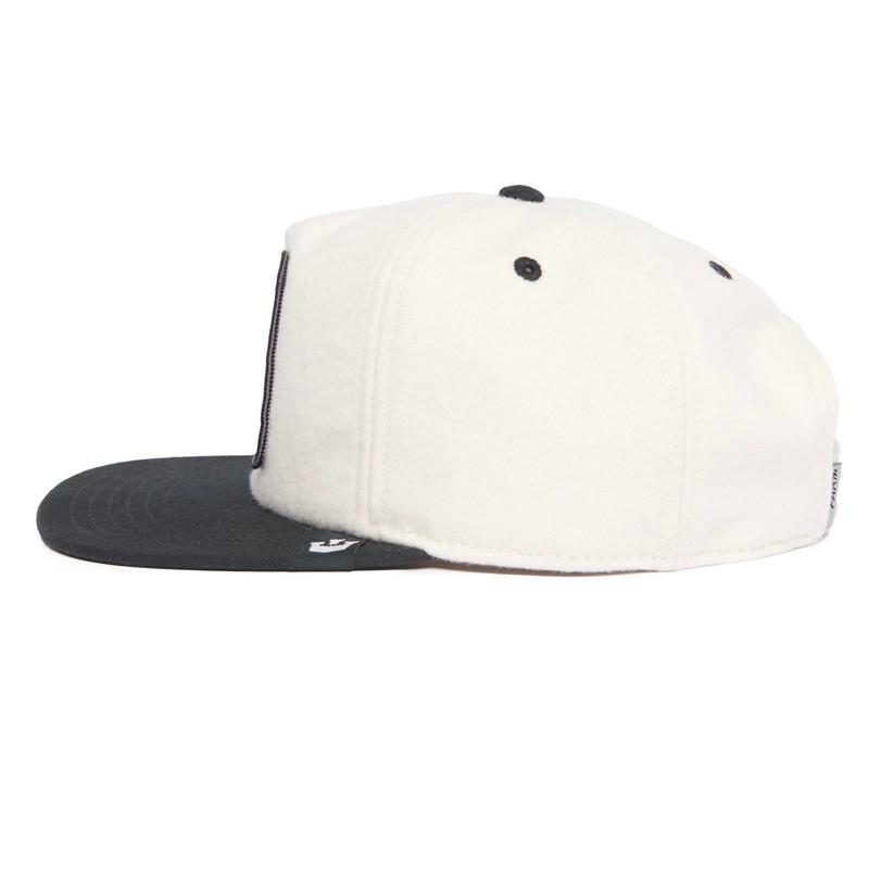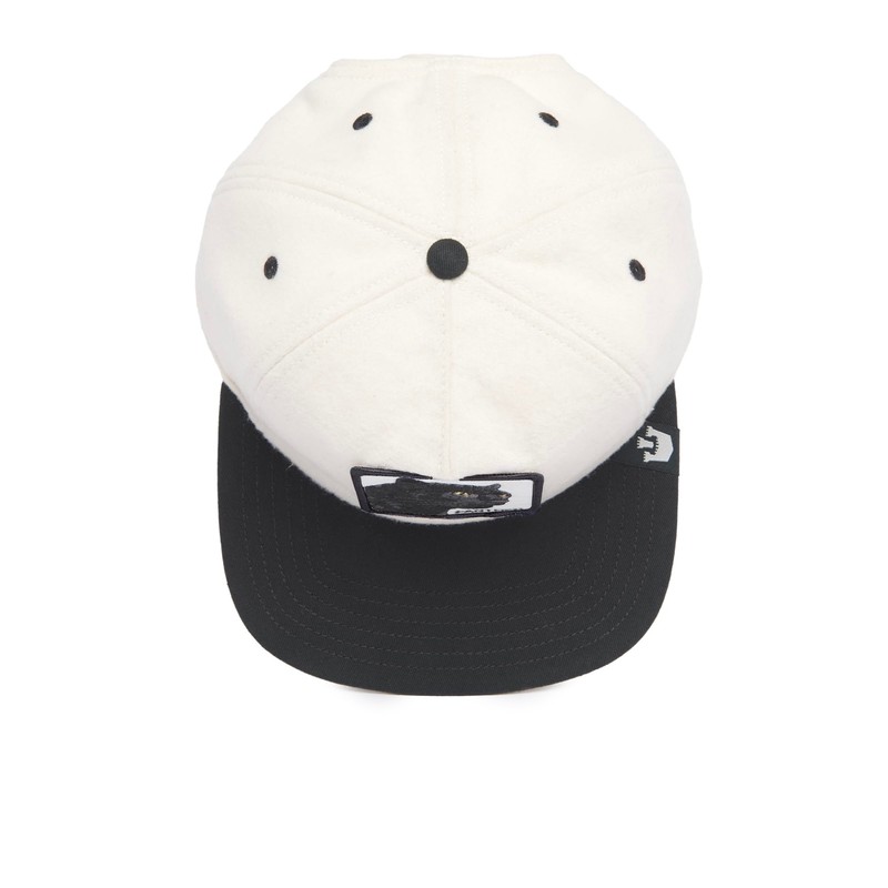 - 5-panel 22 oz. wool-melton baseball cap with adjustable snapback closure, custom embroidered patch on felt backing, and all-over wool double-stitch paneling.
