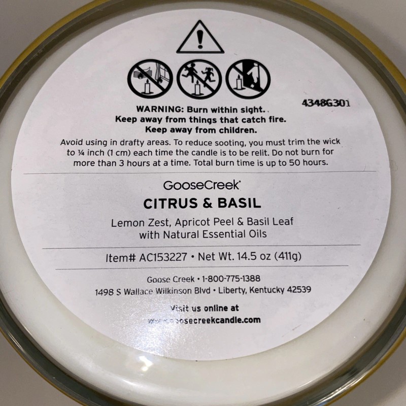 Goose Creek Candle CITRUS & BASIL 14.5 Oz 3 Wick Tumbler