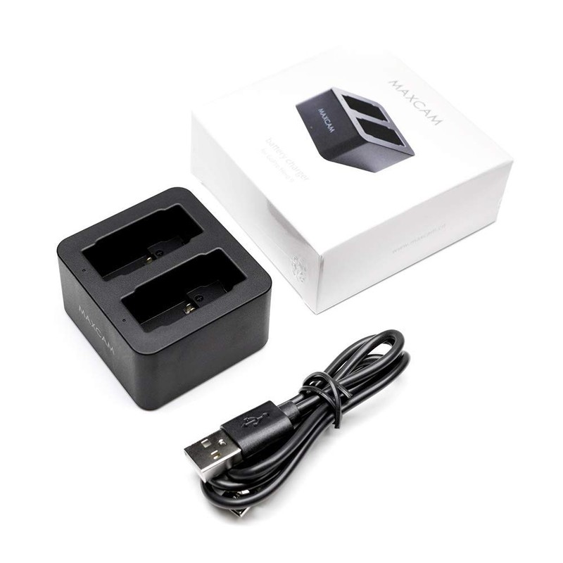 GoPro HERO12 / 11 / 10 / 9 Enduro ブラック用MAXCAM デュアルバッテリー充電器 Type-C USBケーブル付き