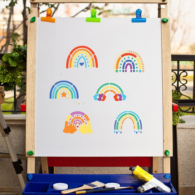 - RAINBOW PAINTING STENCILS: You will receive 1pc reusable rainbow cloud template, which contains 6 styles rainbow patterns. Each stencil is about 30x30cm, large size suitable for wall furniture DIY decorations