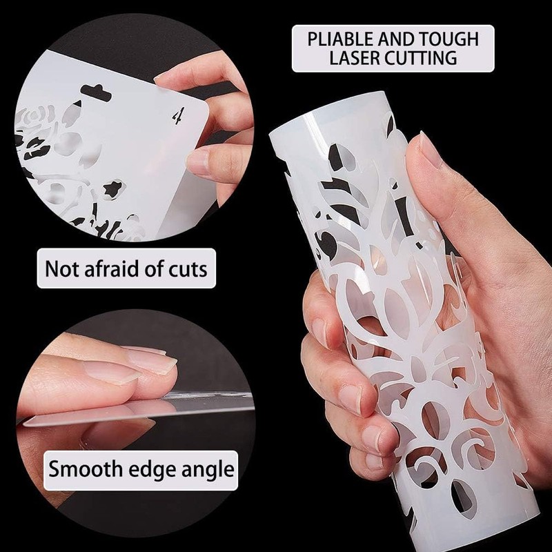 - WASHABLE AND REUSABLE: The reusable plastic stencils is suitable for most painting tool, such as point marker, ballpoint, brush pen, color penci, airbrush, etc. Just use soap and water to wash after use, can be applied repeatedly after washing, long use for different projects.