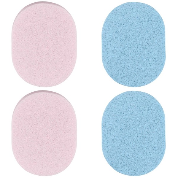 GORGECRAFT Pack of 4 Facial Cleansing Sponge, Reusable Make Up Remover Sponges, Oval Face Wash Sponges, Blue Pink Wash Pads, Moist Powder Puff for Daily Facial Cleansing, Gentle