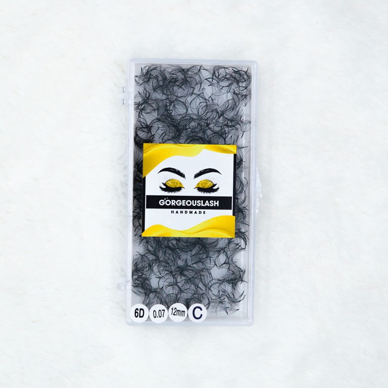 GorgeousLash 1000 Premade Lash Fans. 10D, 8D, 7D, 6D, 5D, 4D, 3D. Eyelash extensions, Handmade! (6D Curl C - 1000 Fans, 12mm)
