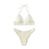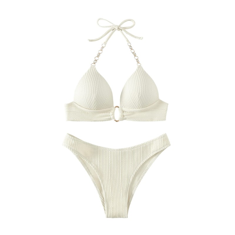 GORGLITTER Push Up Bikini Women's Set Bikini with Rhinestone Chain Halterneck Bikini Two Piece Swimsuit with Lacing Swimwear, beige