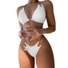 GORGLITTER Women's Bikini with Chains Triangle Bikini Set Two Piece Swimsuit Bikini with Ring Halterneck Bikini, White