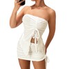 GORGLITTER Women's Two Piece Set Summer Drawstring Split Going Out Set Strapless Tube Top & Ruched Mini Skirt Set Outfit White Medium