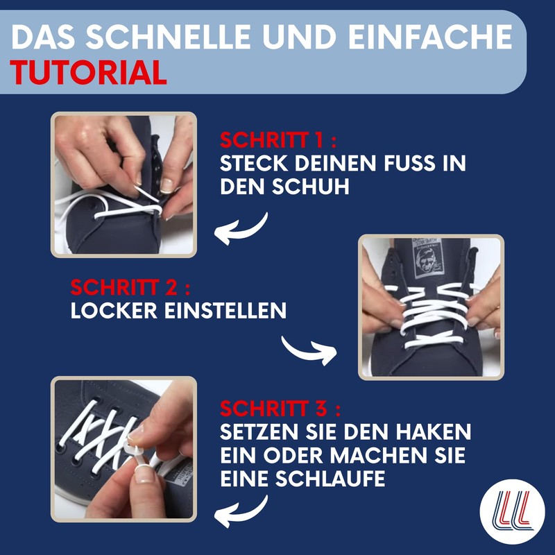 - Quick and easy to install: thread the laces elastically through the eyelets, adjust the desired tension and cut off the excess rest - done in seconds!
