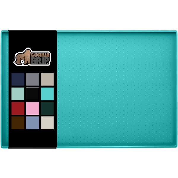 Gorilla Grip 100% Waterproof Raised Edge BPA Free Silicone Pet Feeding Mat, Dog Cat Food Mats Contain Spills Protects Floors, Placemats for Cats and Dogs Water Bowl, Pets Accessories 28x18 Turquoise