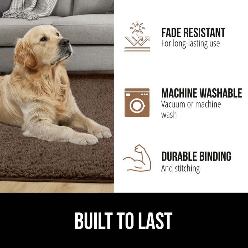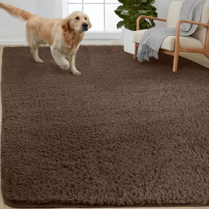 Gorilla Grip Soft Faux Fur Area Rug, Washable, Shed and Fade Resistant, Grip Dots Underside, Fluffy Shag Indoor Bedroom Rugs, Easy Clean, for Living Room Floor, Nursery Carpets, 3x5 FT, Brown