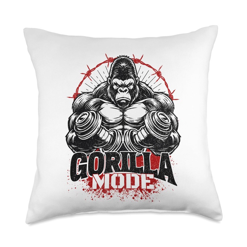 Gorilla Mode Workout Exercise Lifting Weights Strong Gym Throw Pillow