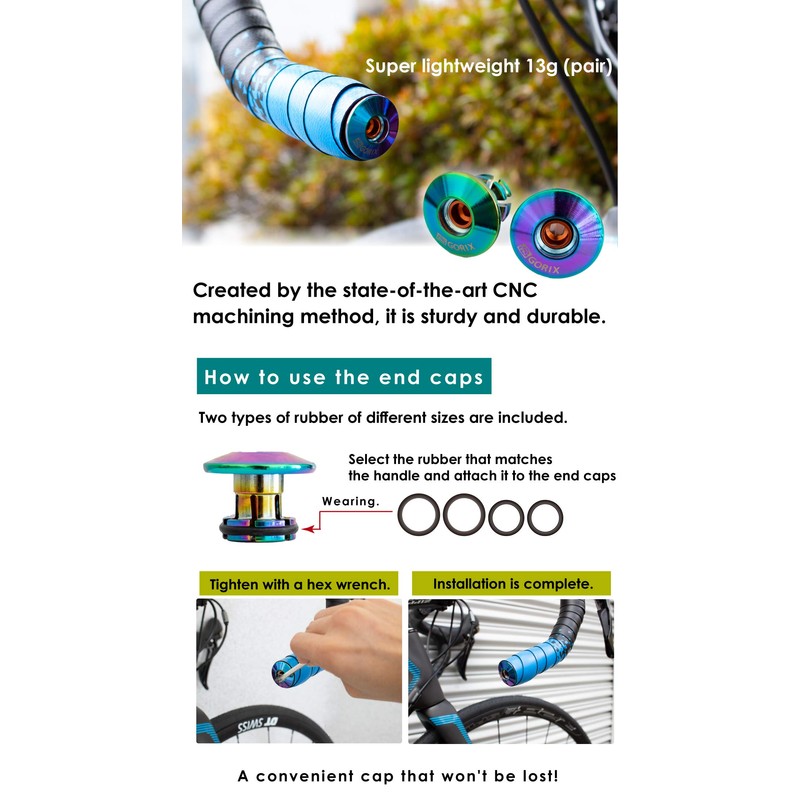 - ・Bar tape replacement is ideal for customizing your bike and changes the impression. End caps are easy to use and beautiful “oil slick color”.
