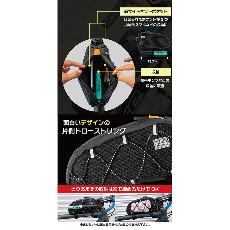 - Ideal for storing food and smartphones: The top tube bag is located in an easy-to-reach location so you can store your frequently used smartphone or snacks