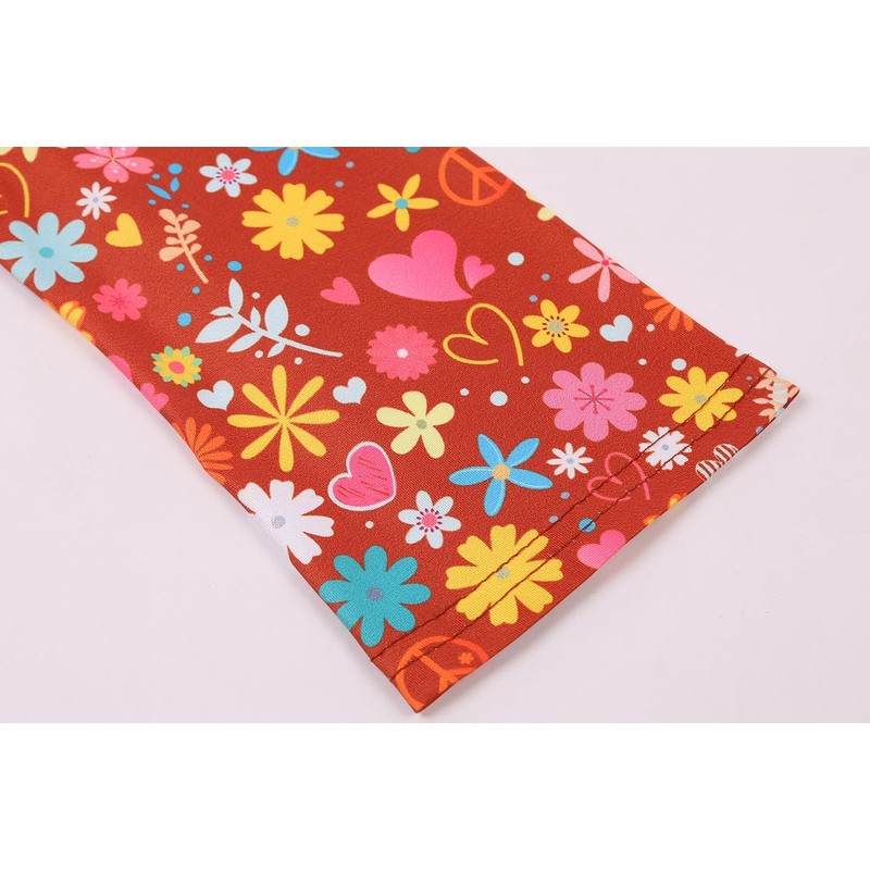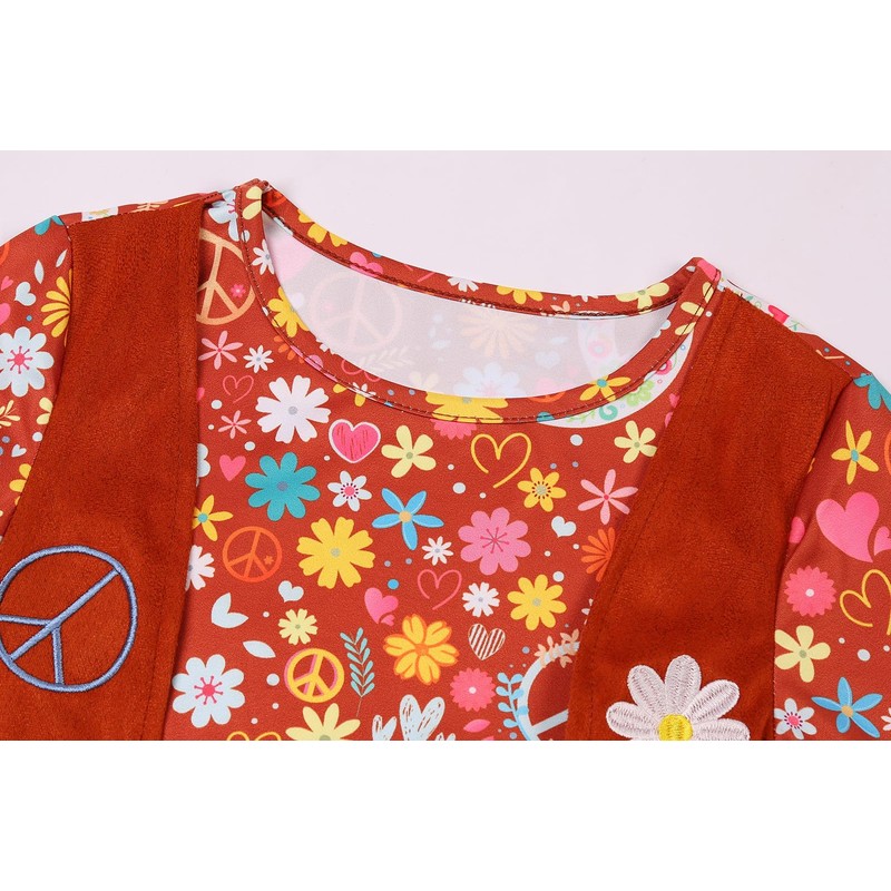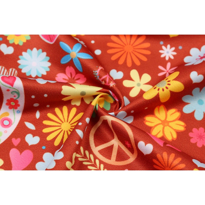 - Peace and Love Accessories: This costume includes a peace sign necklace and earrings, spreading the message of peace and love that defined the era. And the hippie dress with flowers and peace sign that adds a touch of authenticity to the hippie look, allowing for versatile styling options.