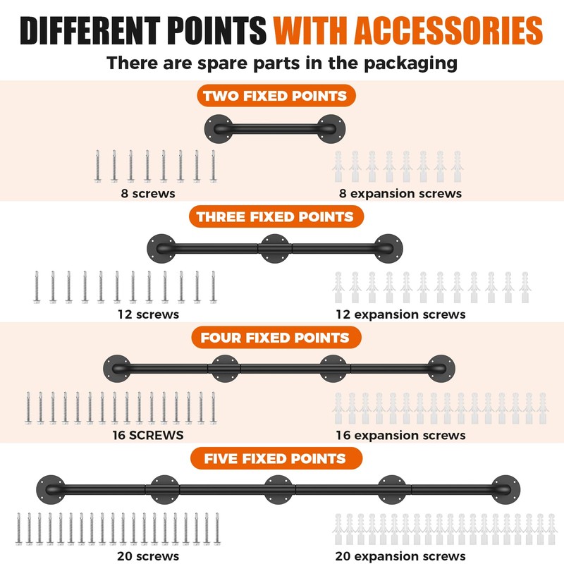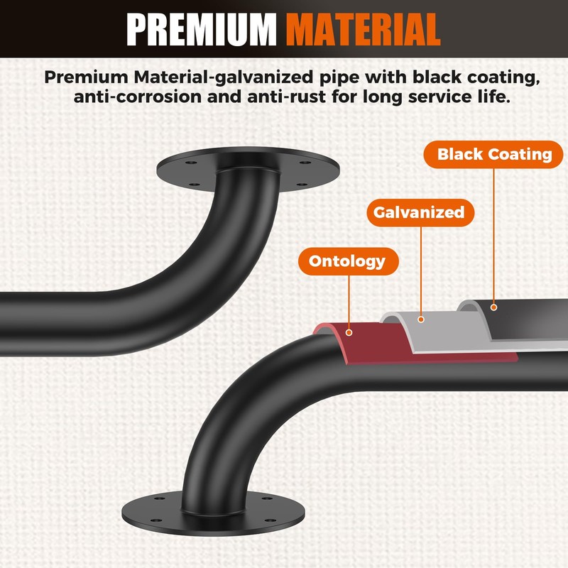 - Easy to Install: Wall mounted handrail kit includes all necessary screws for quick and easy installation on wood, concrete, vinyl, brick, or stucco surfaces. One-person DIY installation. (Note: Please measure the required length of the grab bar carefully before installation.)