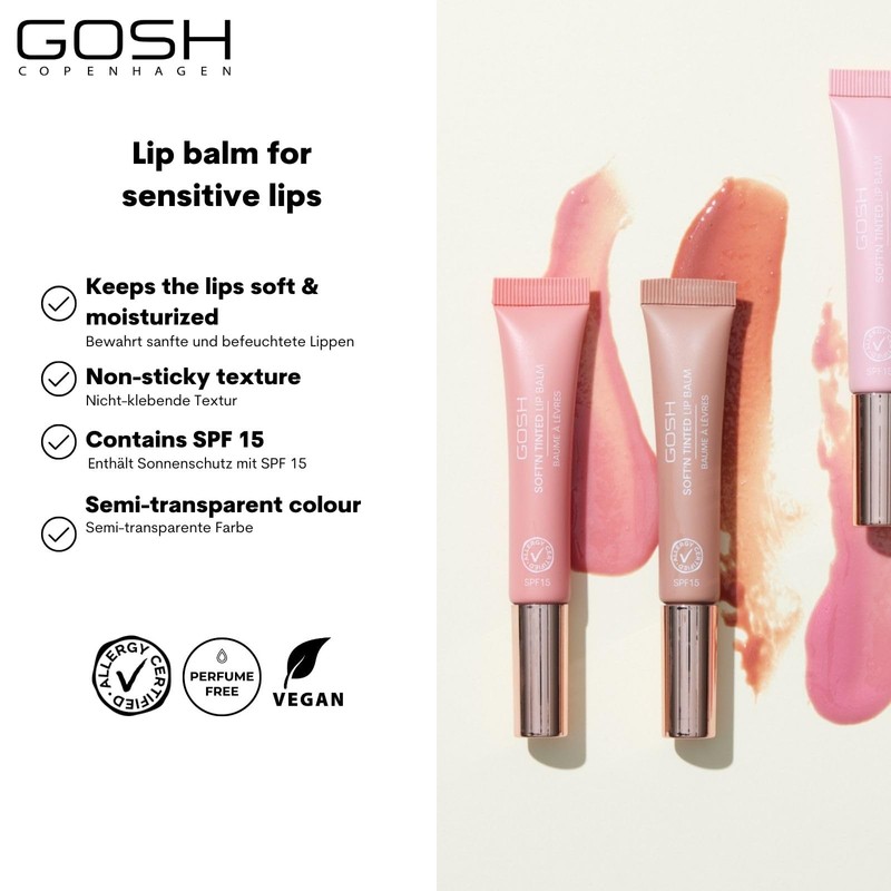 - TWO IN ONE: Der tinted Lip Balm von GOSH pflegt deine Lippen geschmeidig weich und verleiht ihnen zus?tzlich einen dezenten Farbton. Fr ein angenehmes Tragegefhl und immer den perfekten Style.