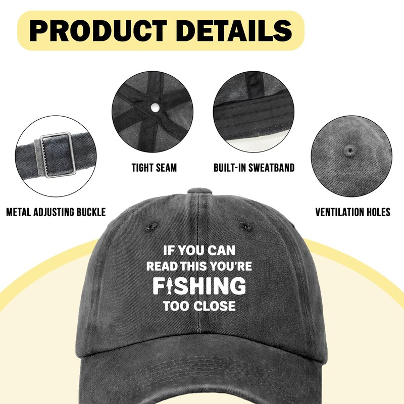 - Unique Design: "If You Can Read This You're Fishing Too Close" - Our baseball caps are designed well with funny texts and colorful patterns. This cute and interesting hat will add personality to your daily clothing matching and bring more happiness and fun to your life