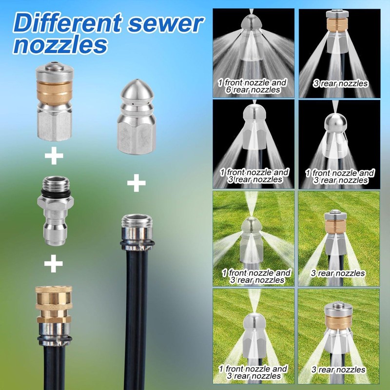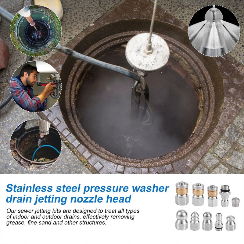 - Practical Tools: Our jet nozzle kit can be used for general sewer cleaning, industrial pipe cleaning, etc., easily solving various cleaning and blockage problems.