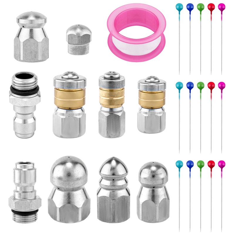 - Package Content: You will get 10 pieces of sewer jetter nozzles, including 3/8" sewer jetting nozzle, 1/8" sewer jetting nozzle, 1/4" sewer jetting nozzle, 1 piece of 1/4" NPT quick connector and 1 piece of 3/8" NPT quick connector, come with 15 needles and 1 tape. Sufficient quantity to meet your needs.