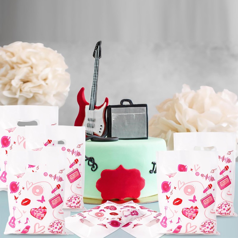 - Product Content: You will receive 50 pieces of pop music bags, sufficient to meet your needs of usage. The gift bags are printed with guitar, microphone and disco ball patterns, which will be perfect gift bags for your music theme parties.