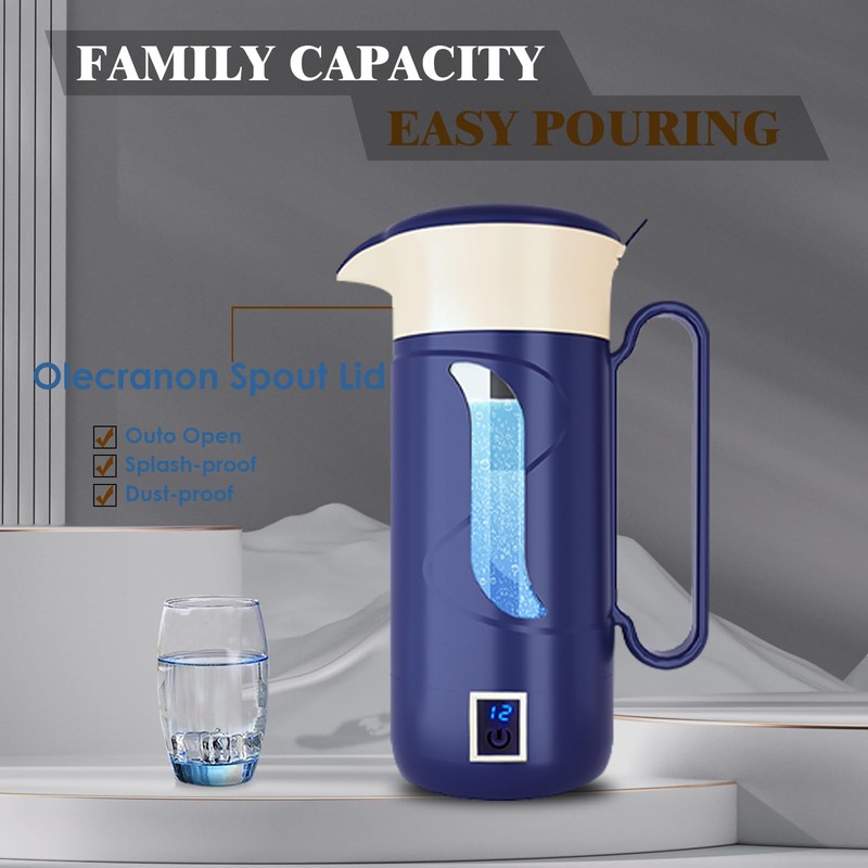GOSOIT Hydrogen Water Bottle Hydrogen Alkaline Water Generator Ionizer Hydrogen Water Machine Maker Hydrogen Water Pitcher Dispenser with SPE & PEM 1500ml/51oz (Vivid Blue)
