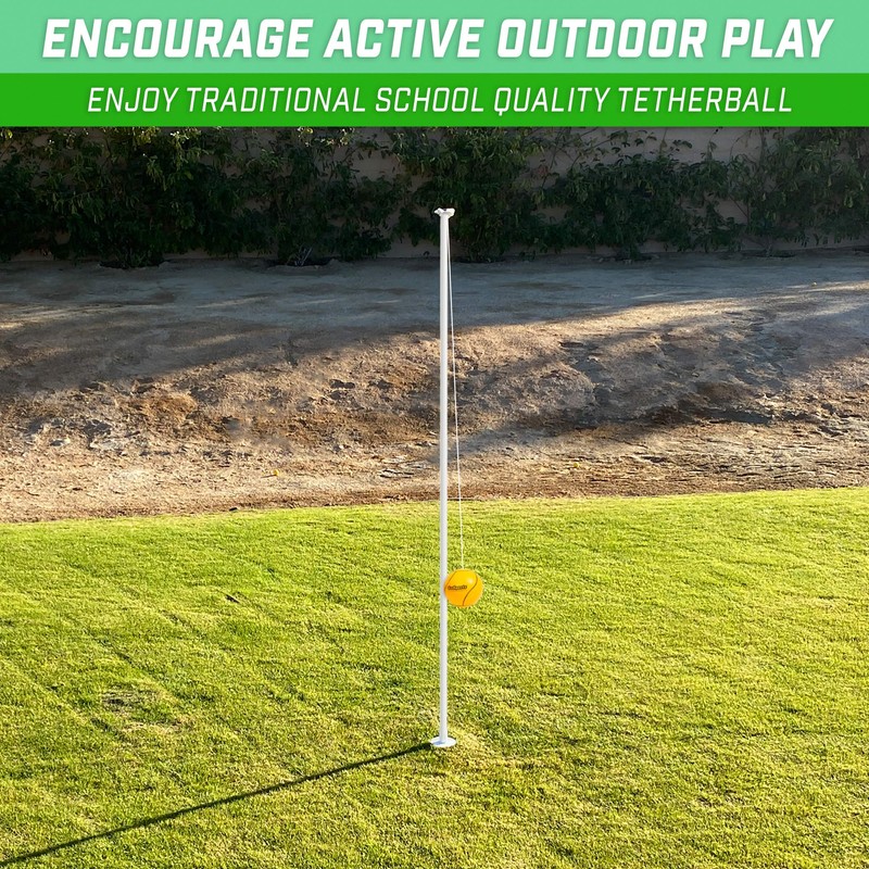 - TETHERBALL SET: Take fun back to days on the playground and school recess with tetherball; Full set includes complete tetherball pole assembly, tetherball with rope, and ball pump - complete set ready for play