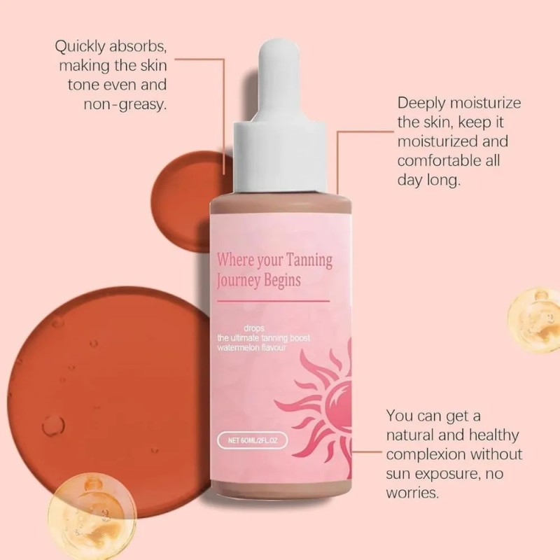esfuerzo for obtener luminosidad durante todo el año: ¡Simplifique su rutina con gotas bronceadoras sin sol que se pueden beber! Solo tienes que mezclar unas gotas en tu bebida; el sutil sabor a sandía hace que cada dosis sea refrescante. Mantén un bronceado natural sin esfuerzo, sin importar la estación del año.