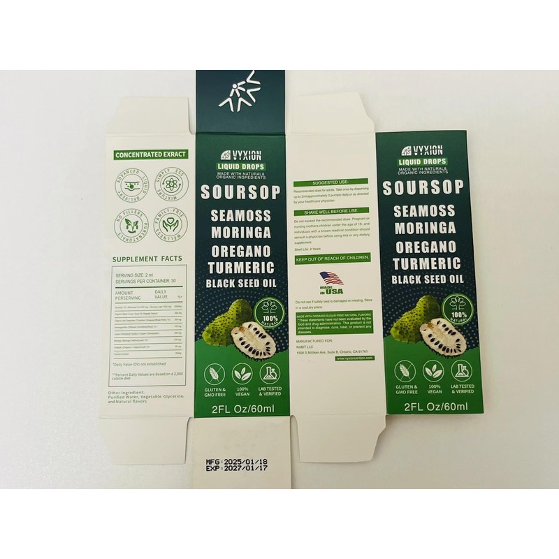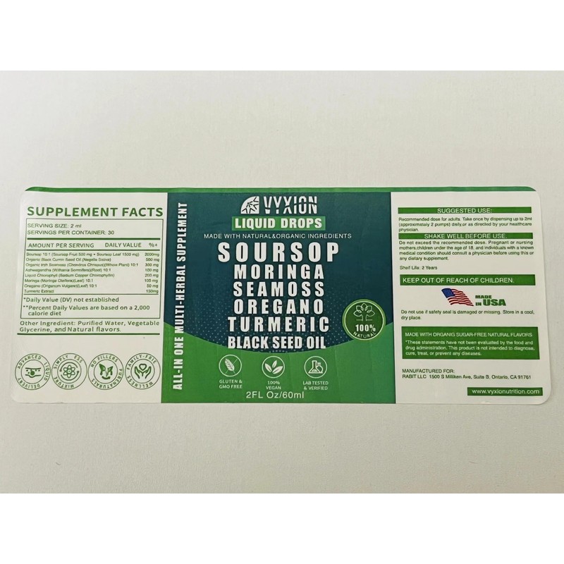 Soursop Bitters Liquid Drops 10 in 1 with Sea Moss, Moringa, Turmeric, Black Seed Oil, Oregano, Ashwagandha | Herbal Extracts for Overall Health-Enhancing | Vegan, Non-GMO | 2 Fl Oz