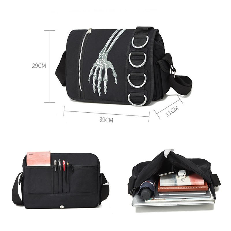 • goth messenger bag:Dark print design, very stylish and eye-catching