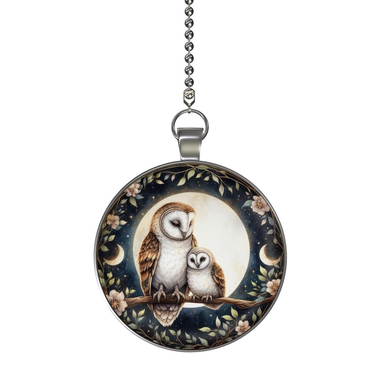 Gotham Decor Moonlit Barn Owl and Baby Single Ceiling Fan and Light Pull Chain Pendant/Fan Pull/Owl Fan Pull